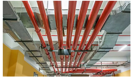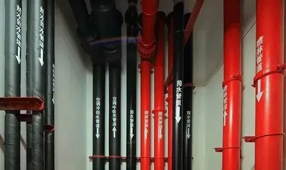 天津消防噴淋系統增加100mm寬的黃色色環,方便與消火栓系統區分。